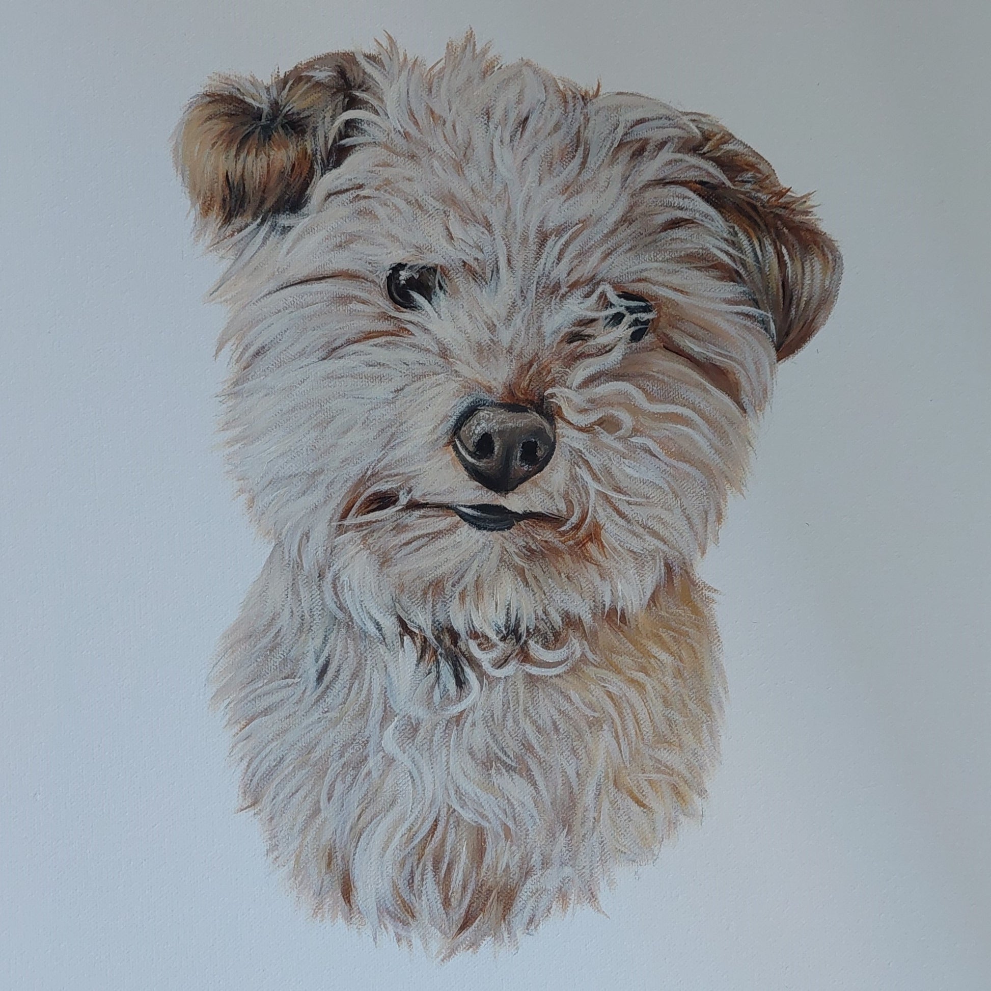 A custom pet portrait on canvas painted with acrylic and sealed.
