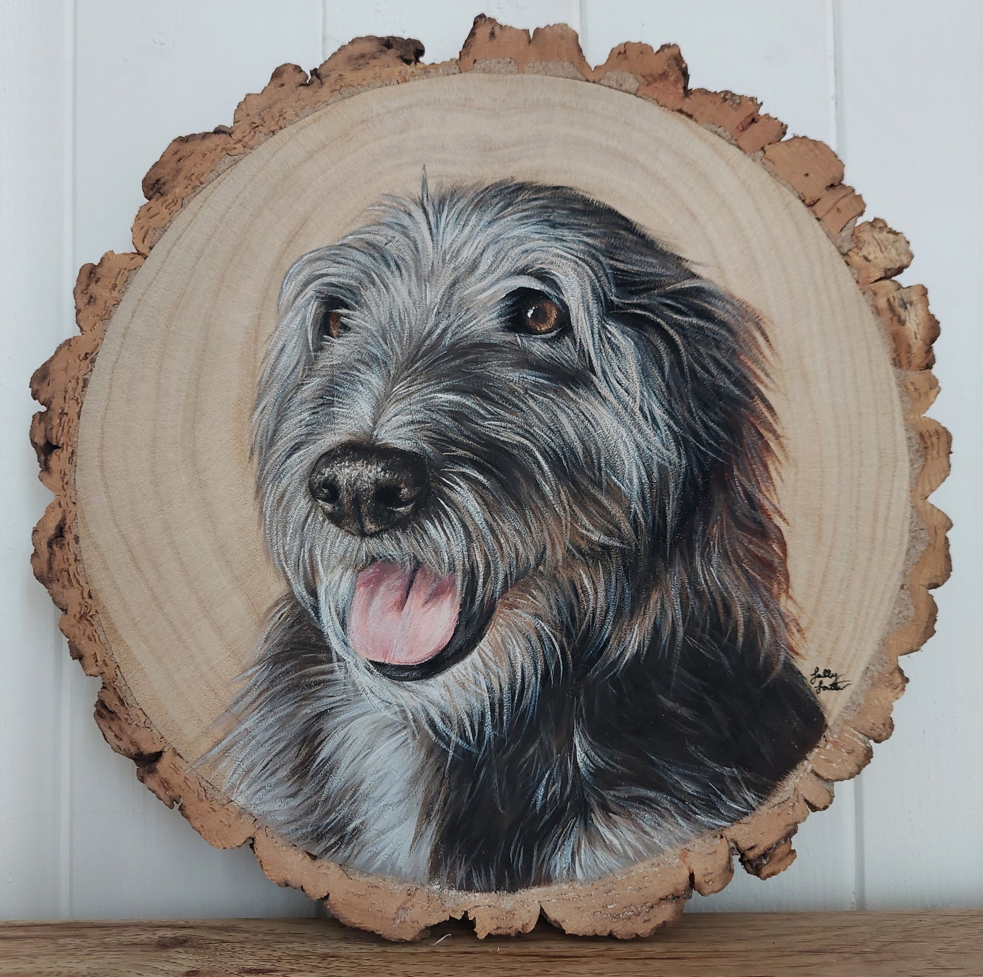 Custom Pet Portrait Log Slice (Medium)